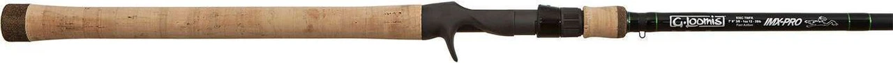 Designed to provide competitive anglers with a fully comprehensive offering of high performance, technique-specific rods, the G Loomis IMX-PRO Bass Casting Rods take the renowned IMX series of rods to new heights. The IMX-PRO features blanks that are designed with a proprietary multi-taper-technology, making them up to 15% lighter and are stronger than ever. A new blend of hi-tech materials allows each blank to react quickly, load efficiently, and provide more sensitivity than any other IMX rod to date. Strategic scrim placements allow for the creation of very specific tapers to enhance the action for each technique. Handles are crafted from premium quality cork for maximum comfort with subtly tapered rear grips to give you that split-grip feel with full grip comfort. Guides are tangle-free Fuji K-frames. With a model perfectly suited for any conceivable bass fishing scenario, tournament anglers need to look no further than the new IMX-PRO series to develop the ultimate arsenal of technique specific gear. The IMX-PRO is a true revelation in bass rods with the quality and performance you expect from G.Loomis.