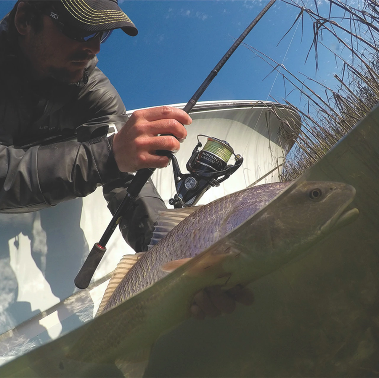 The Shimano Sustain FI Spinning Reels are ideal for bass to small billfish. It’s designed to handle a variety of fishing challenges that you can throw at it. They are known for light rotation and refinement. These reels combine water-repellent coating and specially designed water channeling.