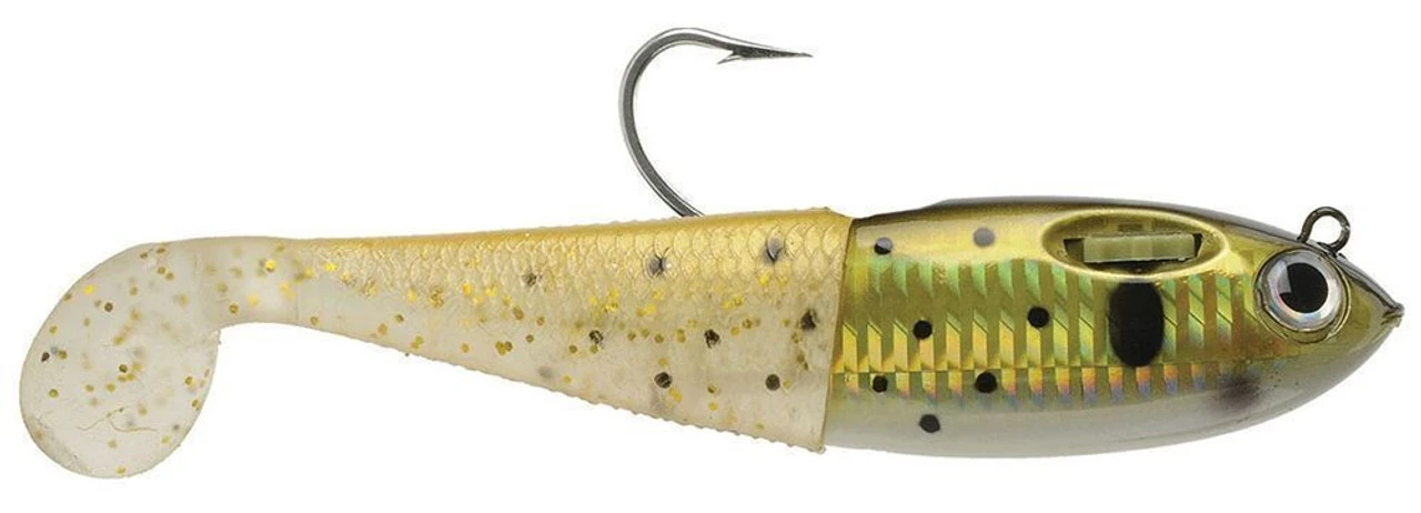 The SpoolTek Fatty has a short, thick, baitfish profile designed to emulate pilchards, croakers, pinfish, finger mullet, herring, threadfin shad, gizzard shad, bunker and others. The lure’s most unique feature is the internal spool containing a stainless steel leader (braid for Bass colors only) that will separate from the lure when a fish strikes. This allows anglers to use lighter leaders attached to the eyelet of the lure, thus enhancing the action while preventing breakoffs due to the internal leader. It is also important to note that the hooked up fish will be unable to use the weight of the lure for leverage to throw the hook.