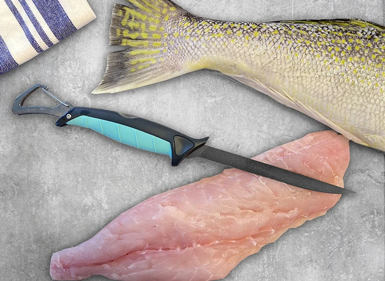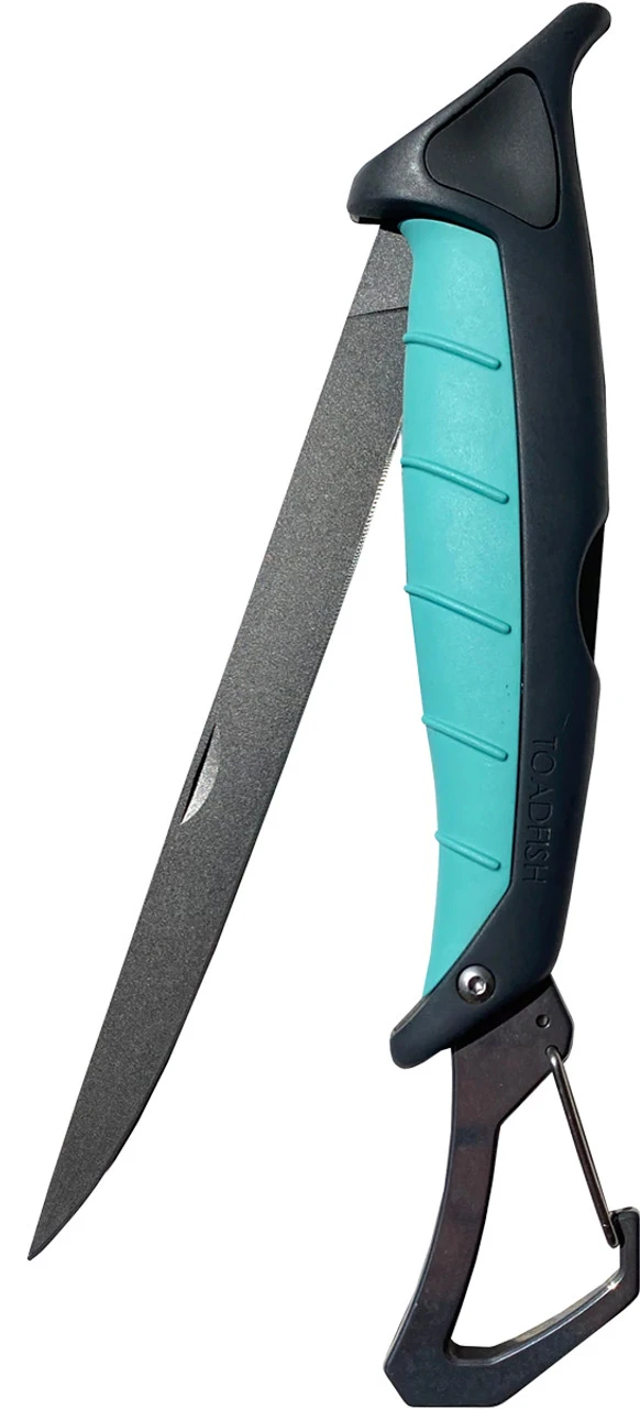 The Toadfish Stowaway Folding Fillet Knife combines the high-end performance and ergonomics of a full-length fixed knife with the safety and versatility of a folding knife. The Stowaway Knife features titanium coating on the 7” high carbon stainless steel blade and all internal stainless steel components to provide superior, salt-tough corrosion resistance for harsh saltwater conditions. The Stowaway Folding Fillet Knife fits easily into kitchen drawers, boat boxes, tackle bags, or travel packs without the need for a bulky sheath.
