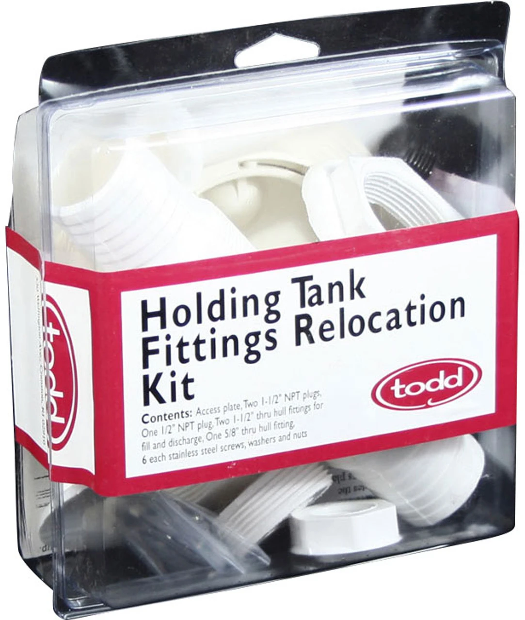 Todd 90-2219 Holding Tank Relocation Kit will allow a boater to plug up existing threaded fitting openings, and to custom-position the new fitting openings anywhere on the tank. Instructions included. Kit includes a 4-1/2 in. Access Plate.